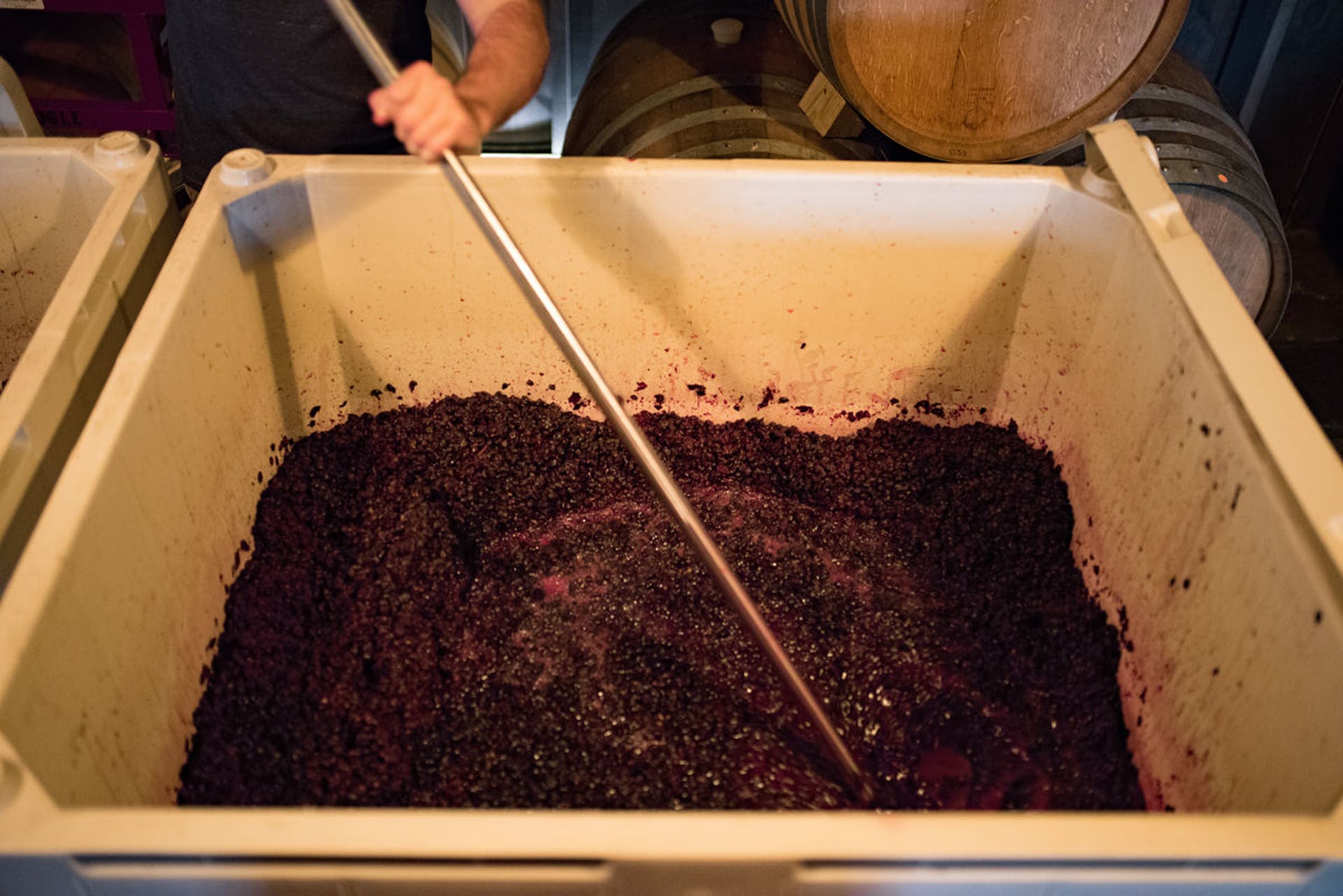 The industrial space features a tasting room (or as Macdonald call it “The Wine House”) with long communal tables and living room-style lounging spaces.